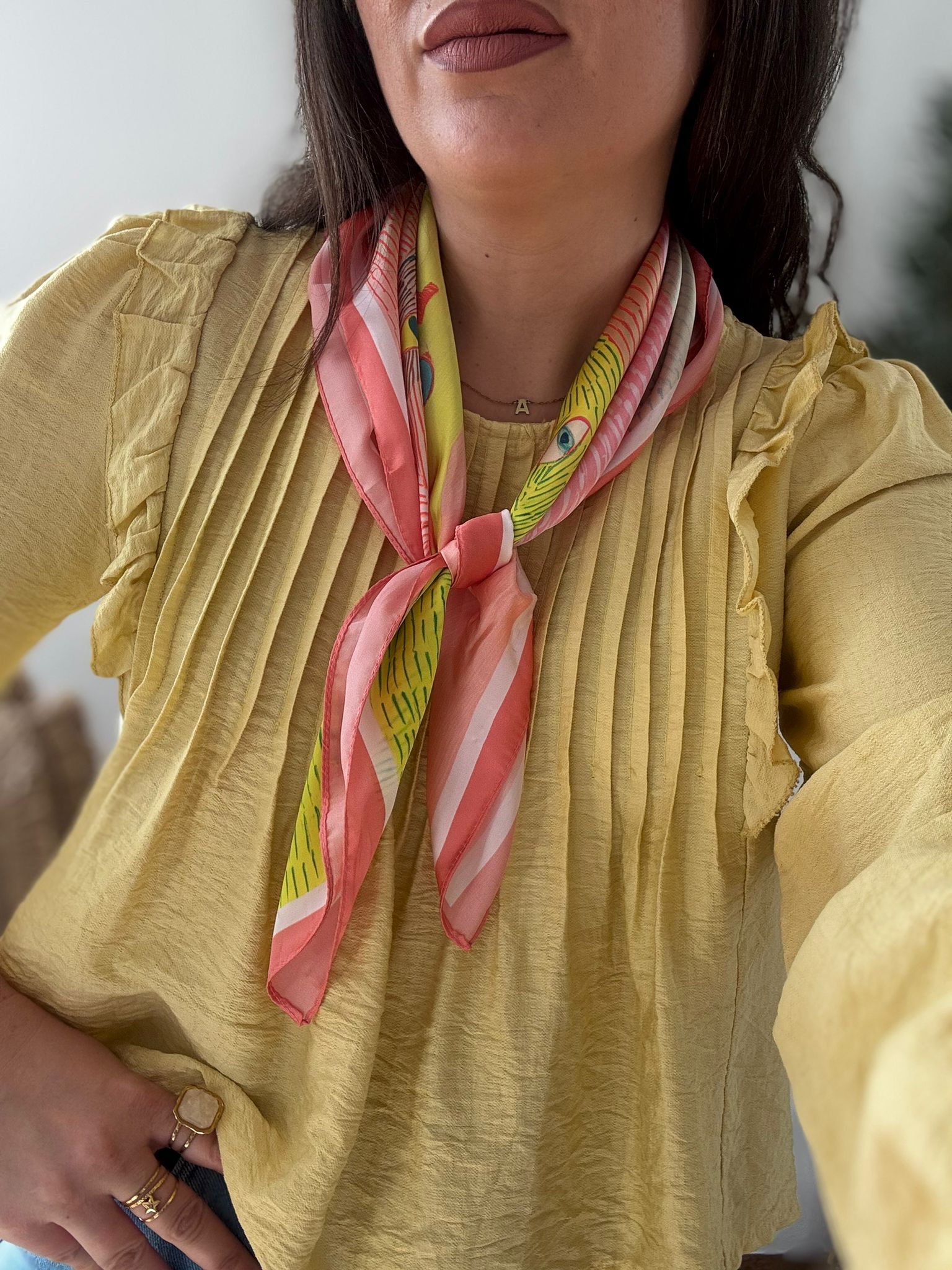 Pañuelo cuadrado satinado estampado de cuello