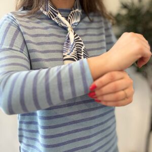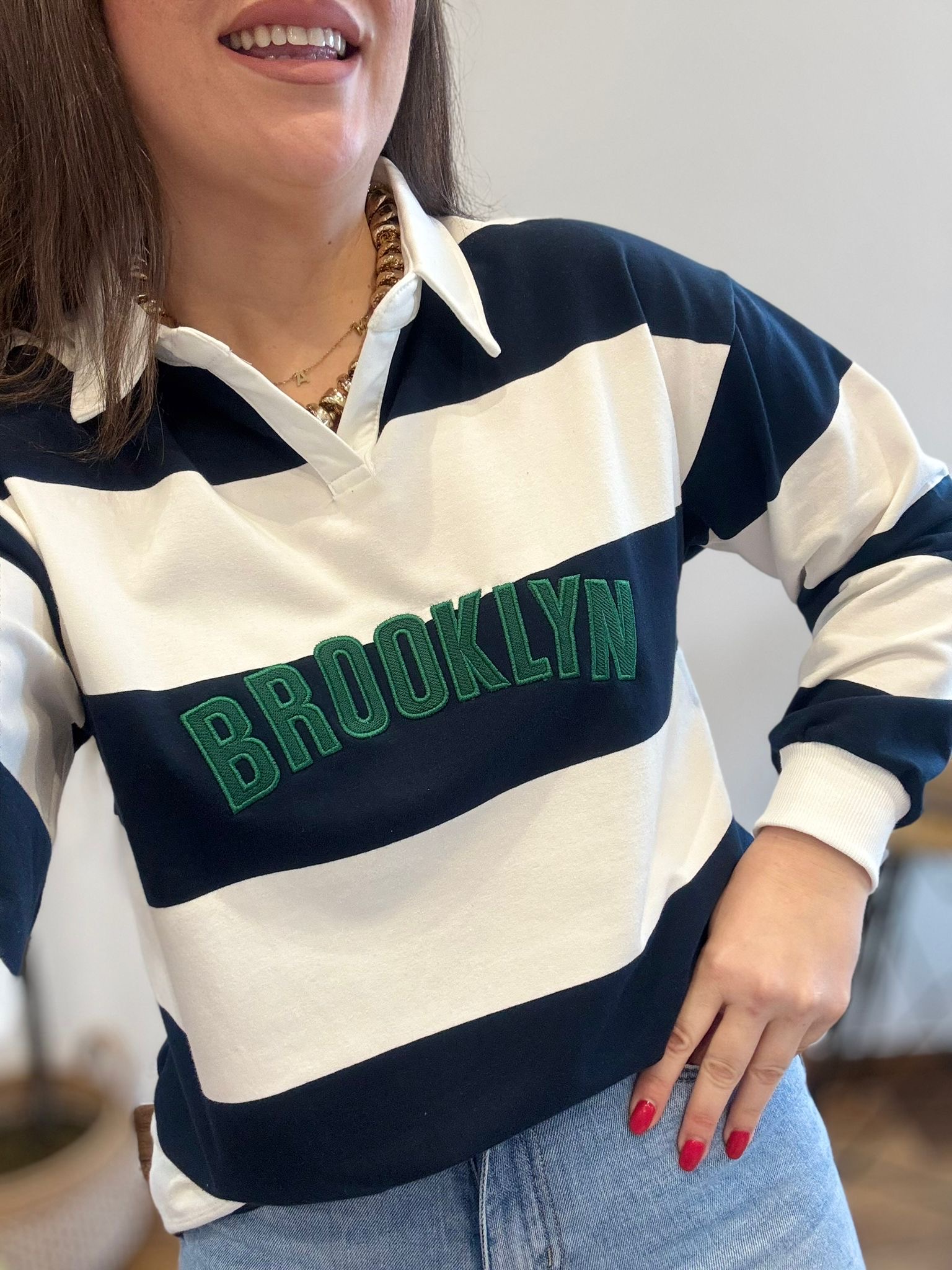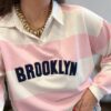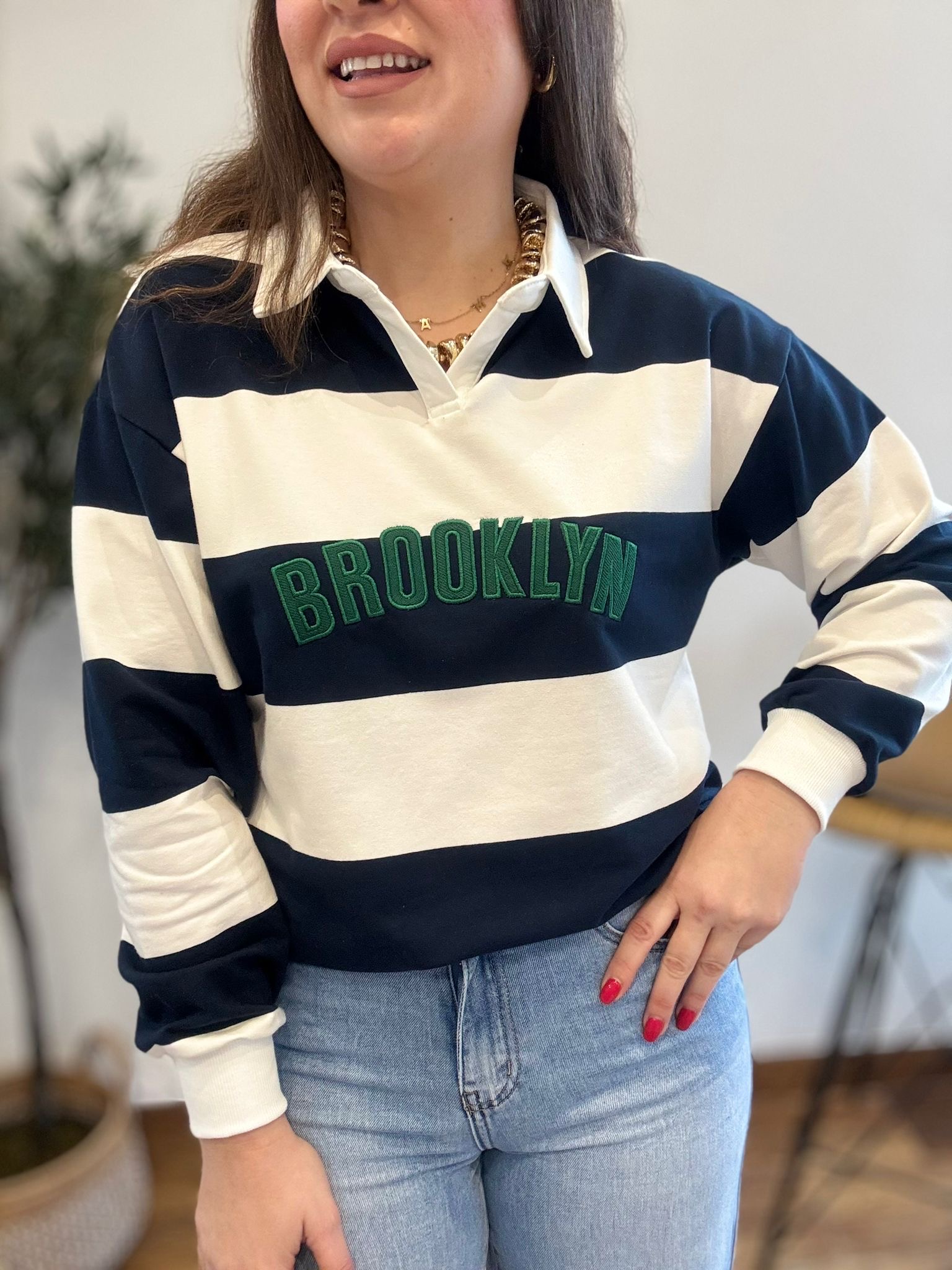 Polo tipo sudadera con detalle de letras bordadas. Ana lleva habitualmente talla L/40 y de este modelo utiliza talla M. Vienen oversize. Medidas de contorno de pecho por talla: S 110, M 120 y L 130cm