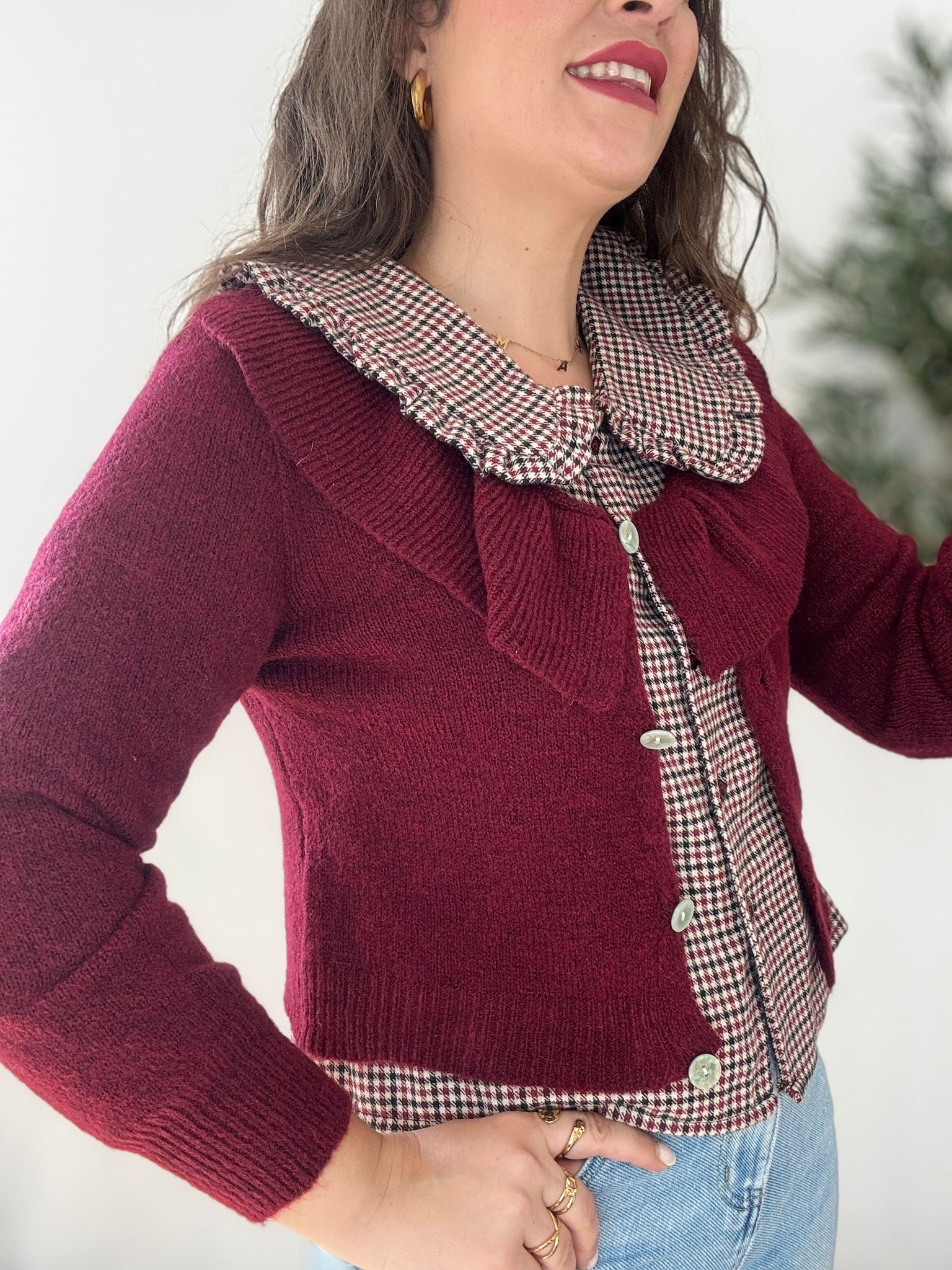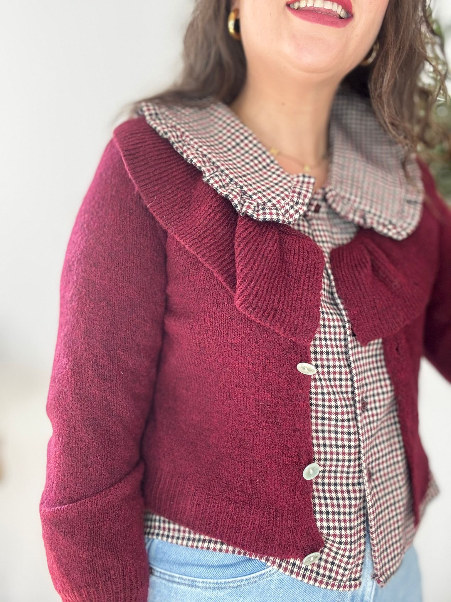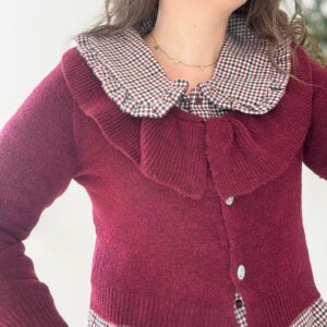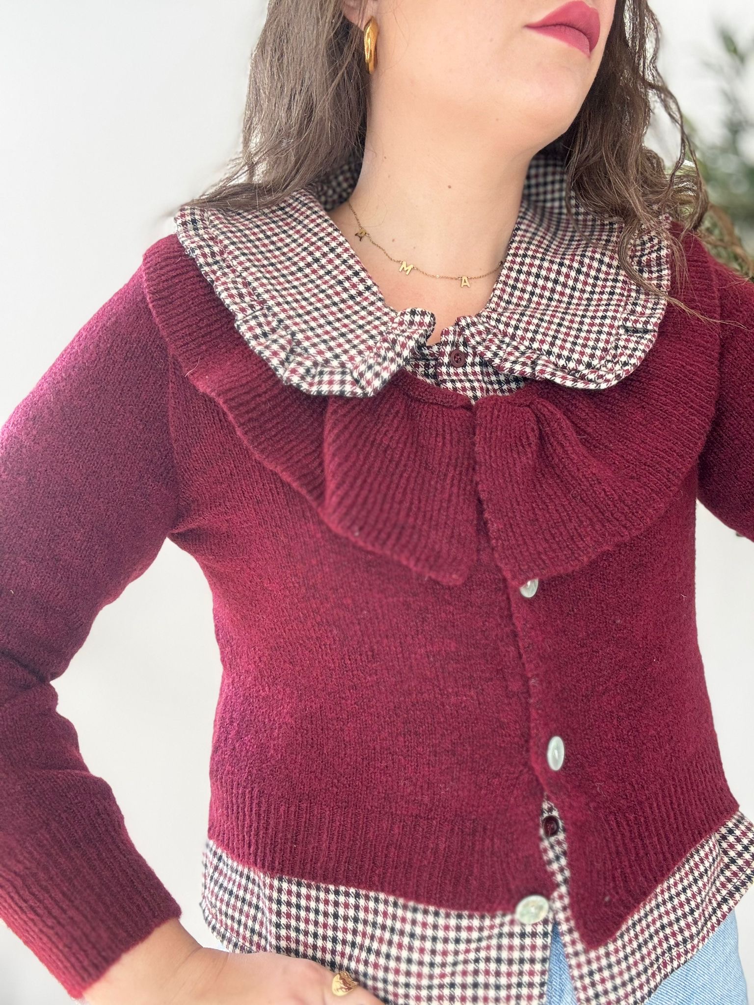 Rebeca cortita de lana con detalle de cuellos bebé. TU RECOMENDADA 34/42. Ana lleva habitualmente talla L 40/42. Medida de largo de la rebeca 47cm
