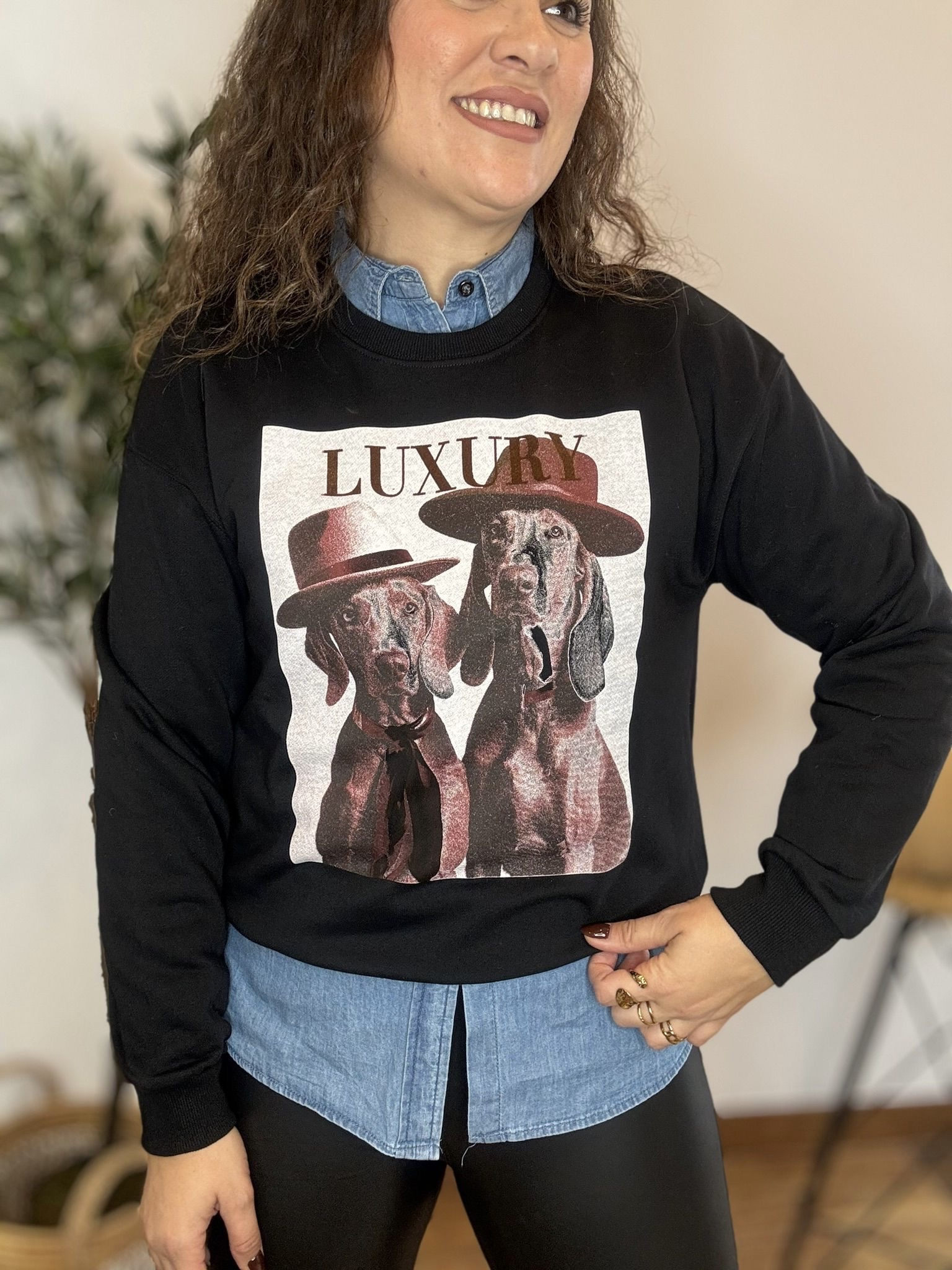Sudadera sin pelito con dibujo. TU RECOMENDADA 36/42. Ana lleva habitualmente talla L