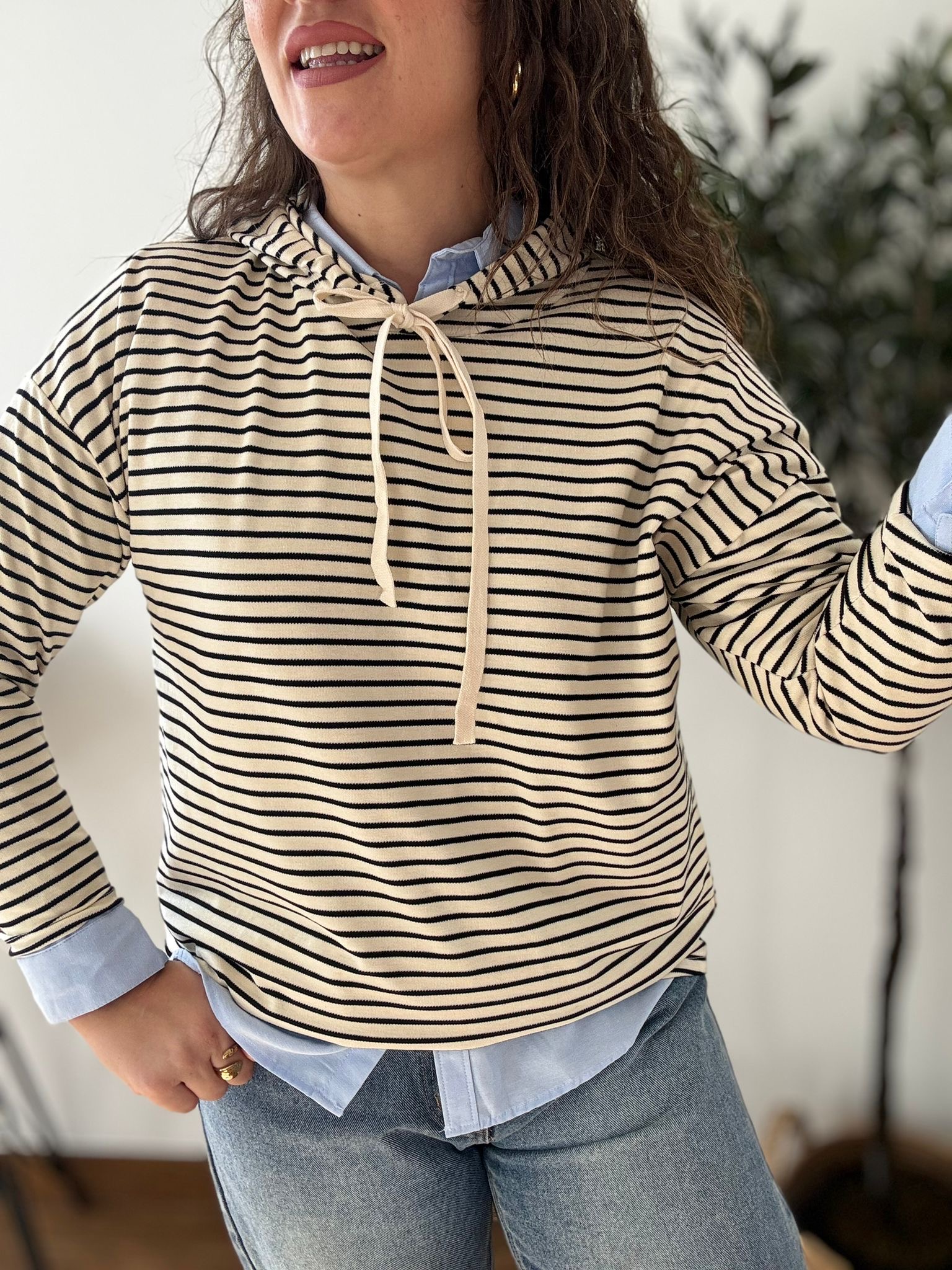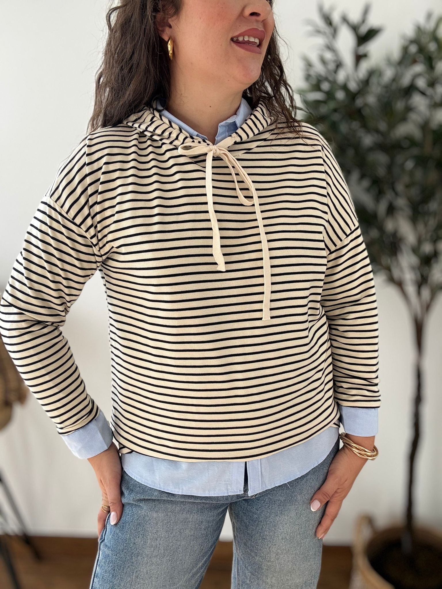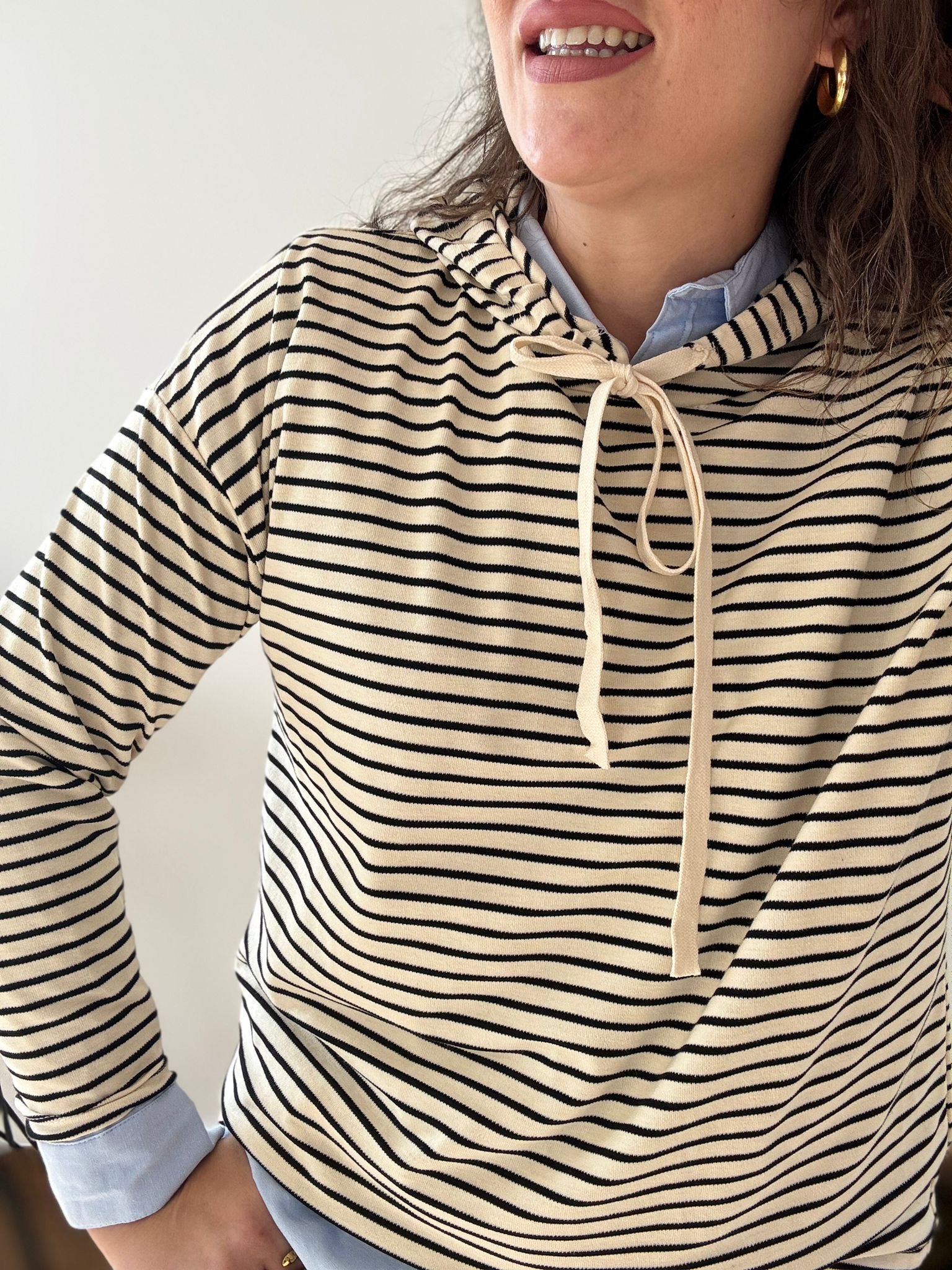 Sudadera con capucha. TU RECOMENDADA 36/44. Ana lleva va habitualmente talla L 40/42. Medidas de la sudadera: contorno de pecho 130 y largo 65cm