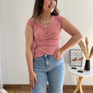Top de licra fruncido con detalle de lazada. TU RECOMENDADA 34/42. Es elástico. Ana lleva habitualmente talla 40