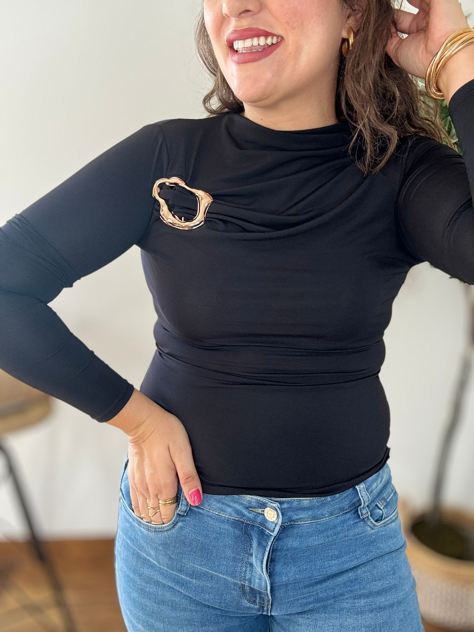 Top elástico con detalle de hebilla dorada. TU RECOMENDADA 34/40. Ana lleva habitualmente talla L 40/42