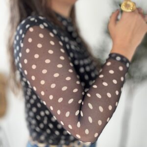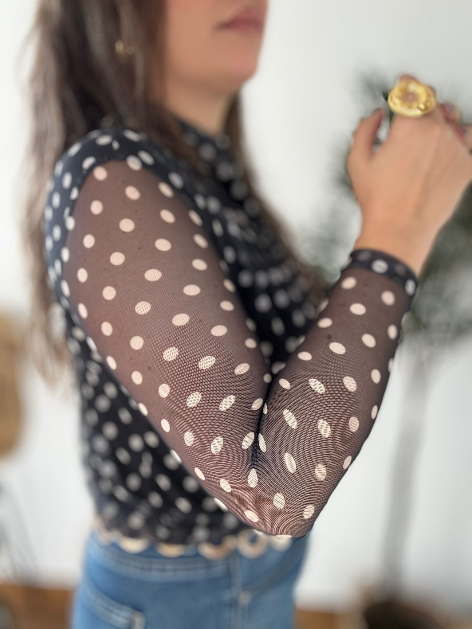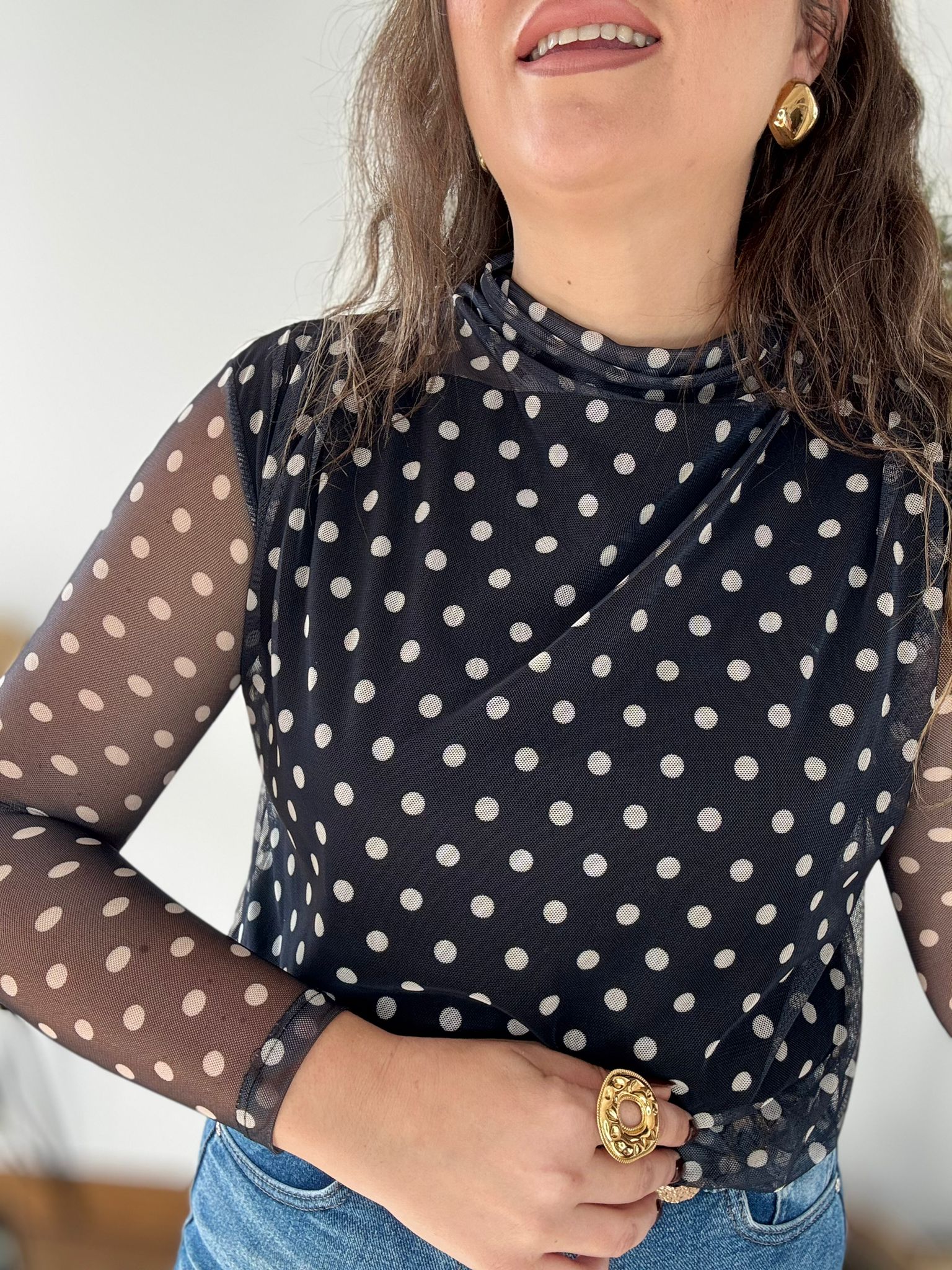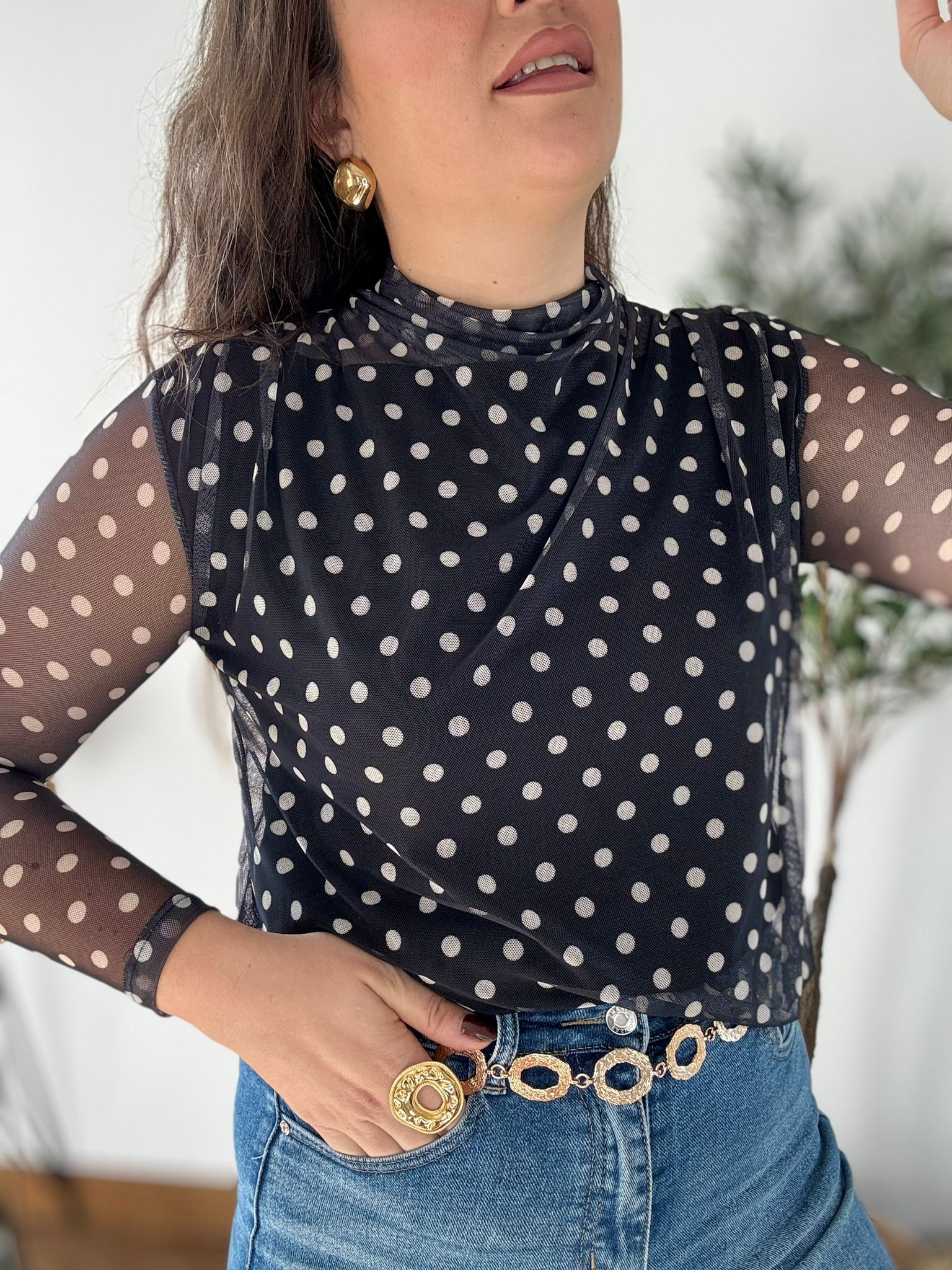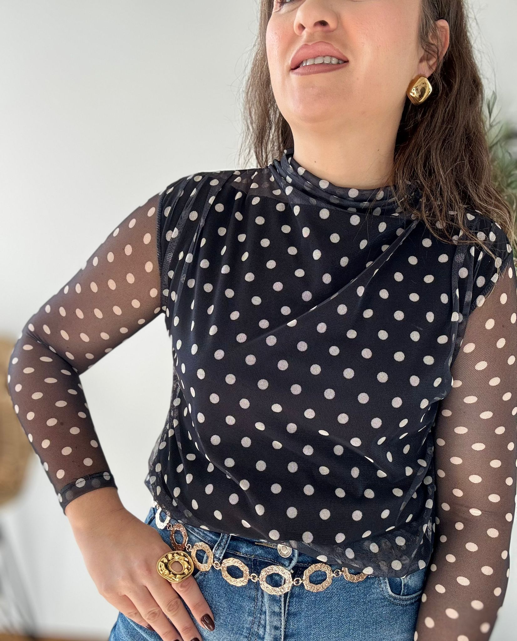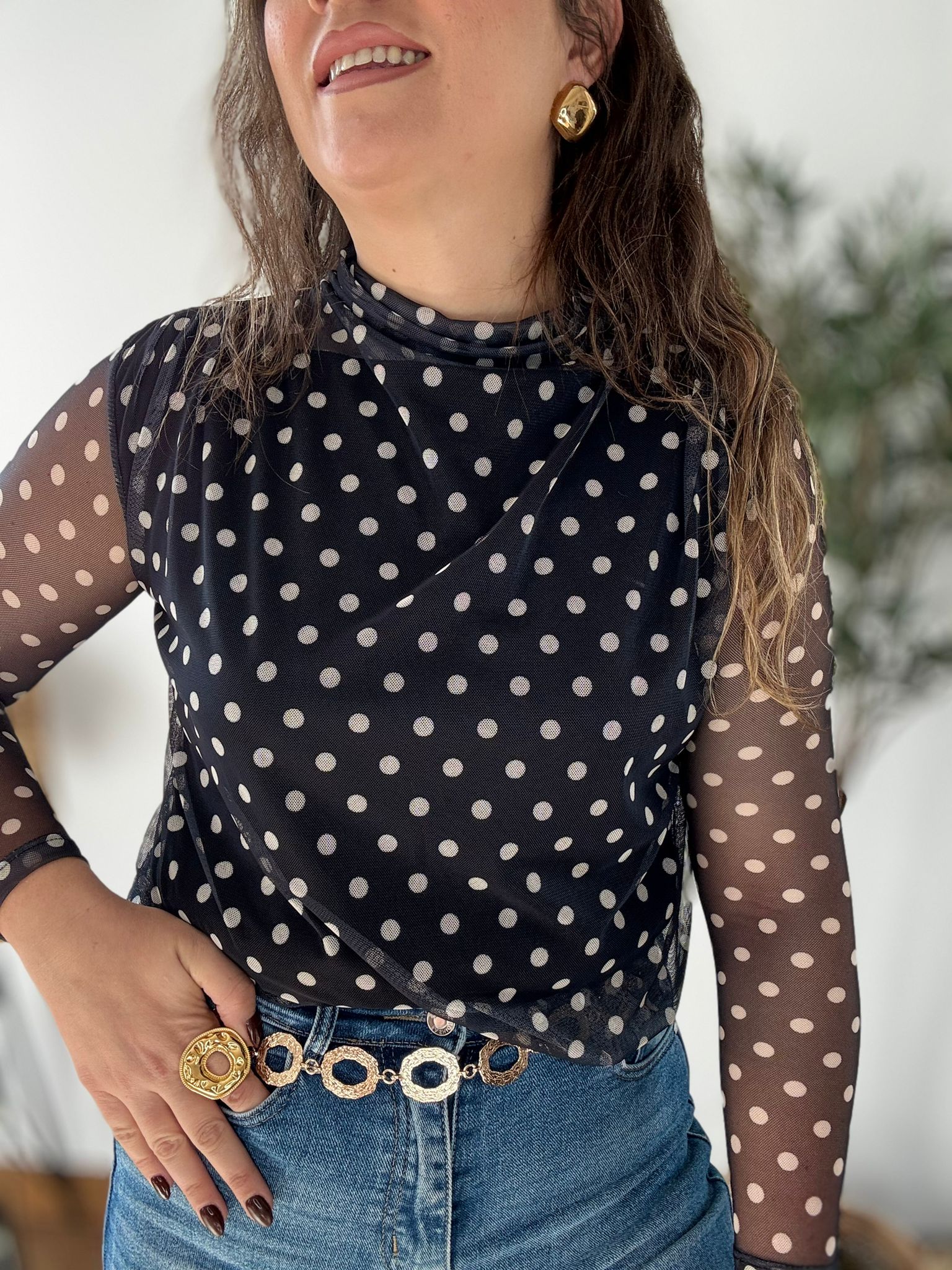 Top de tul con forro delantero engomado en la cintura. TU RECOMENDADA 34/40. Ana lleva habitualmente talla 40/42. Medidas del top: contorno de pecho 109 y largo 50cm