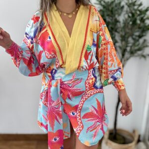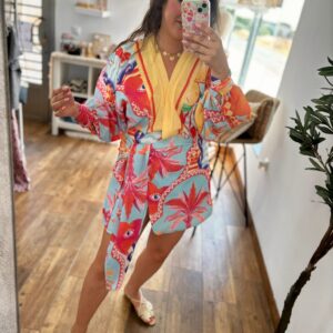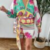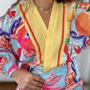 Vestido algodón/lino con efecto falda pareo con lazada. Manga murciélago.TU RECOMENDADA 36/42. Ana lleva habitualmente talla L 40-42 y mide 1.71m