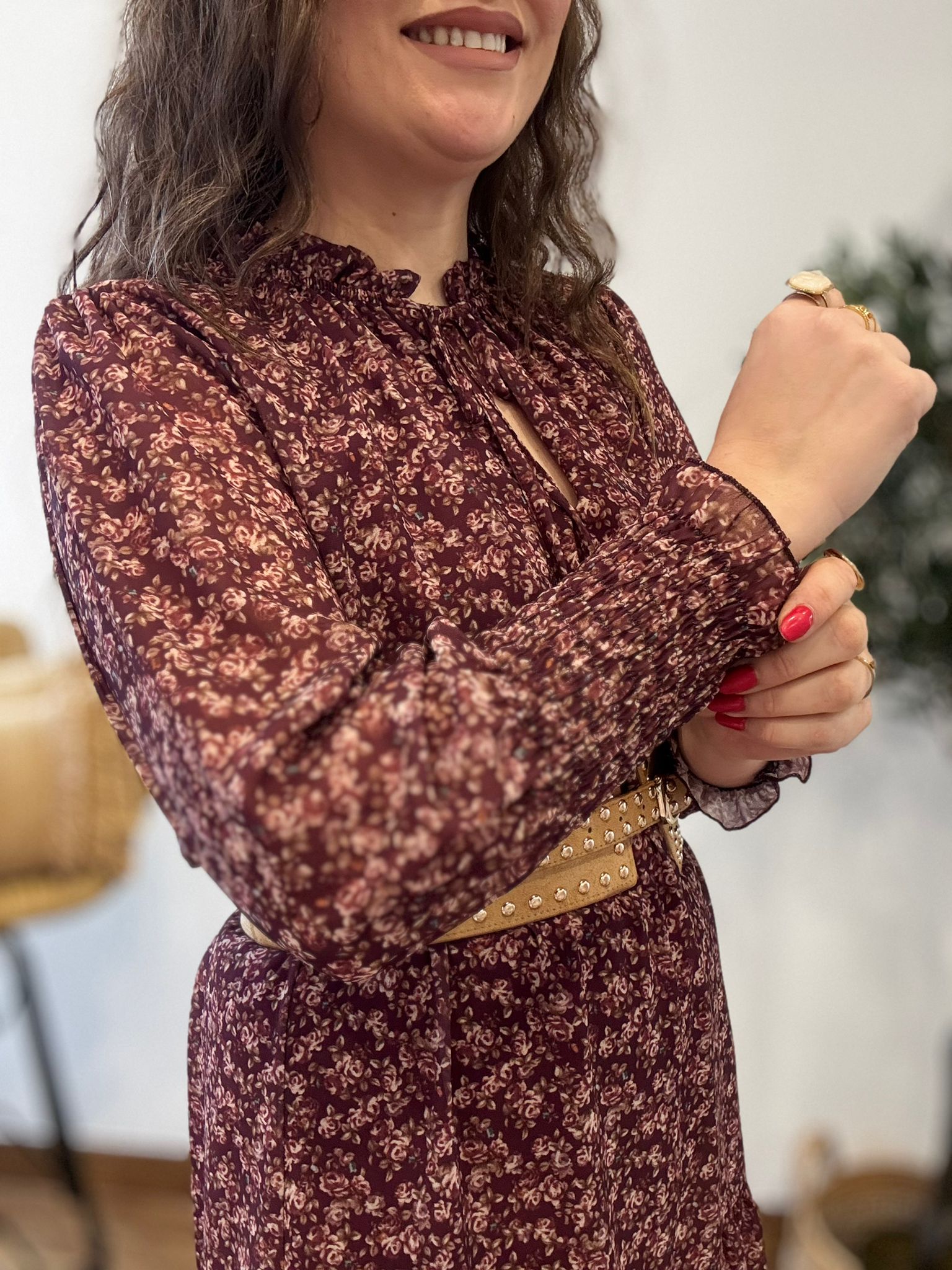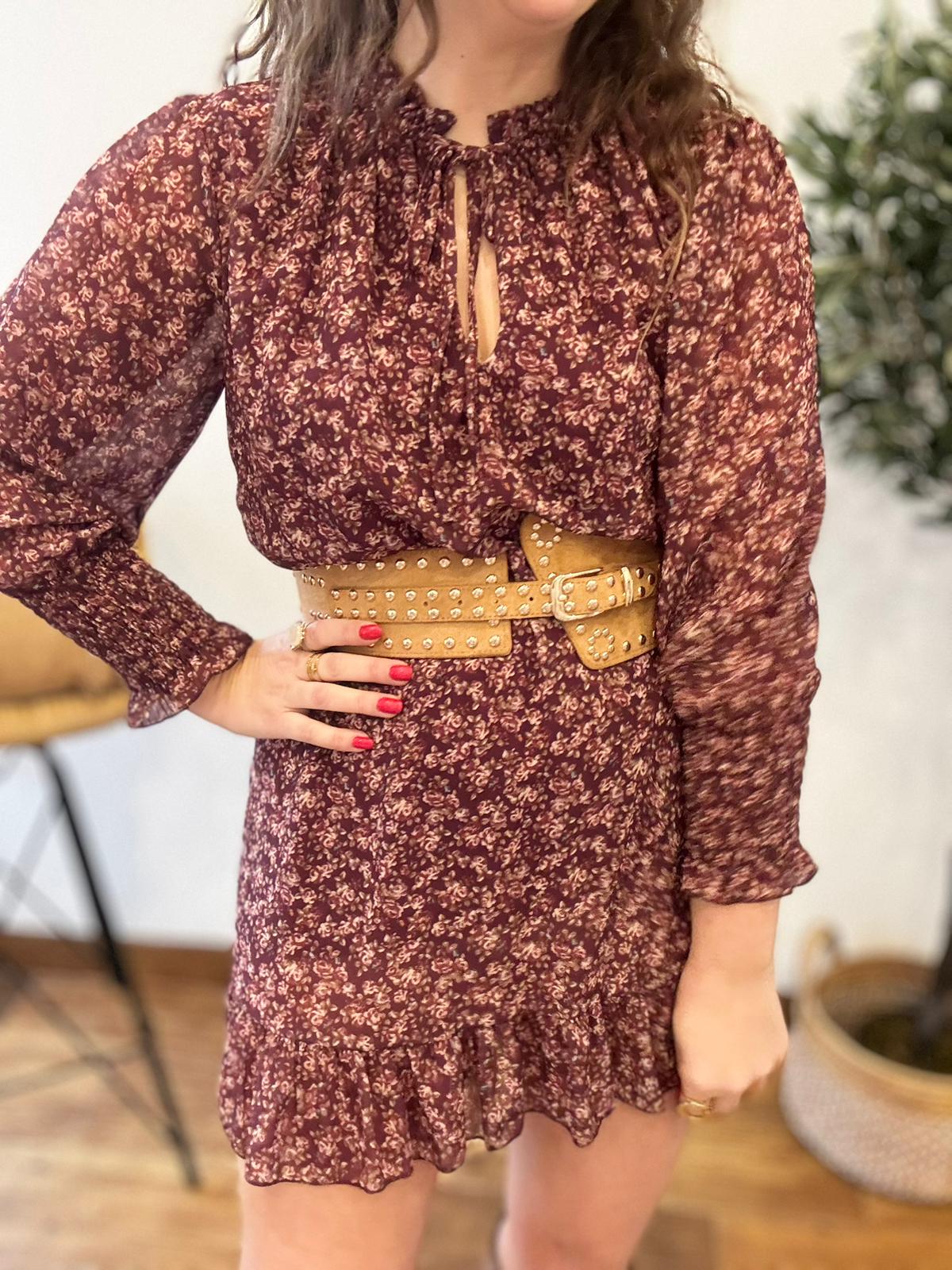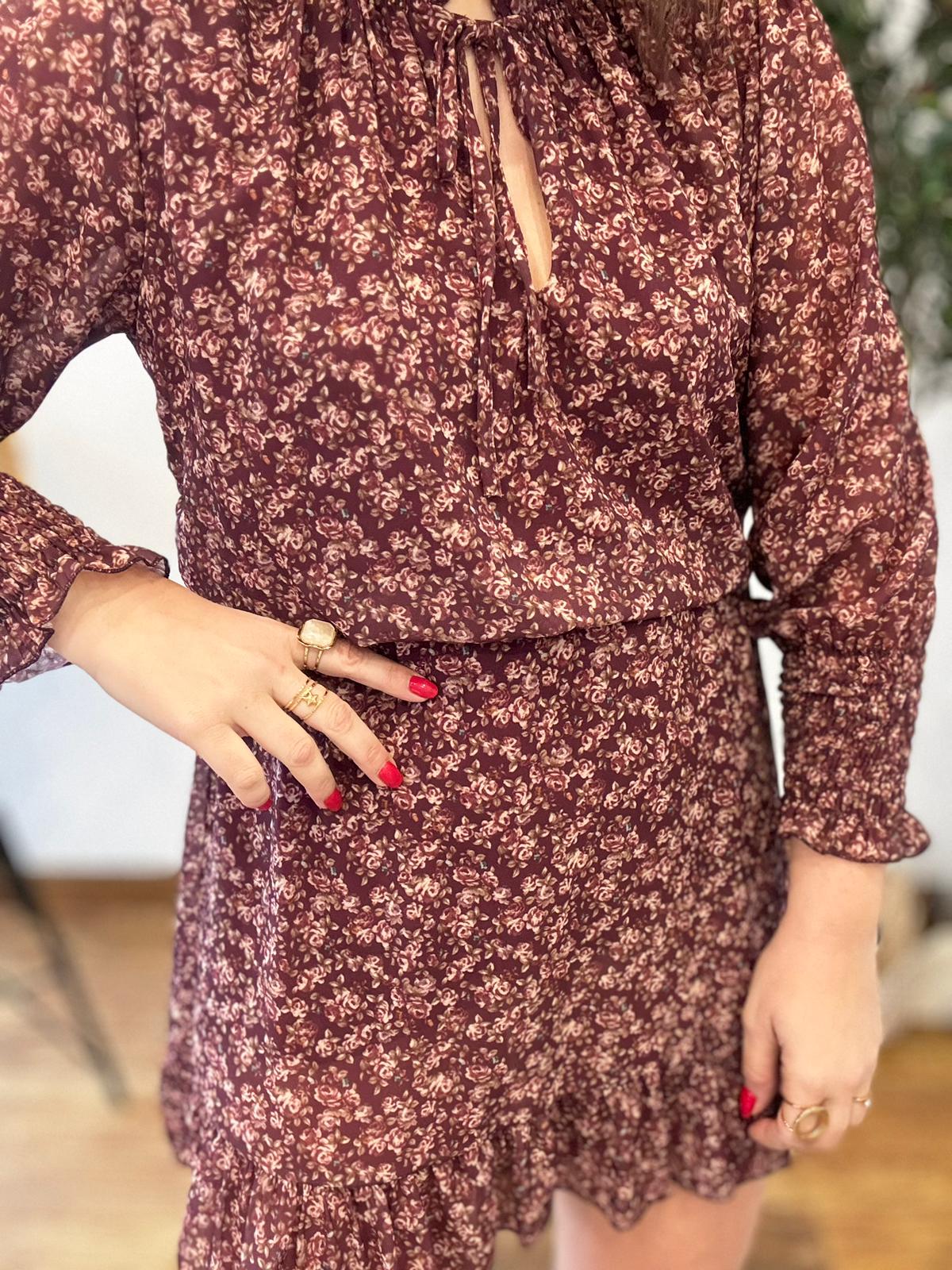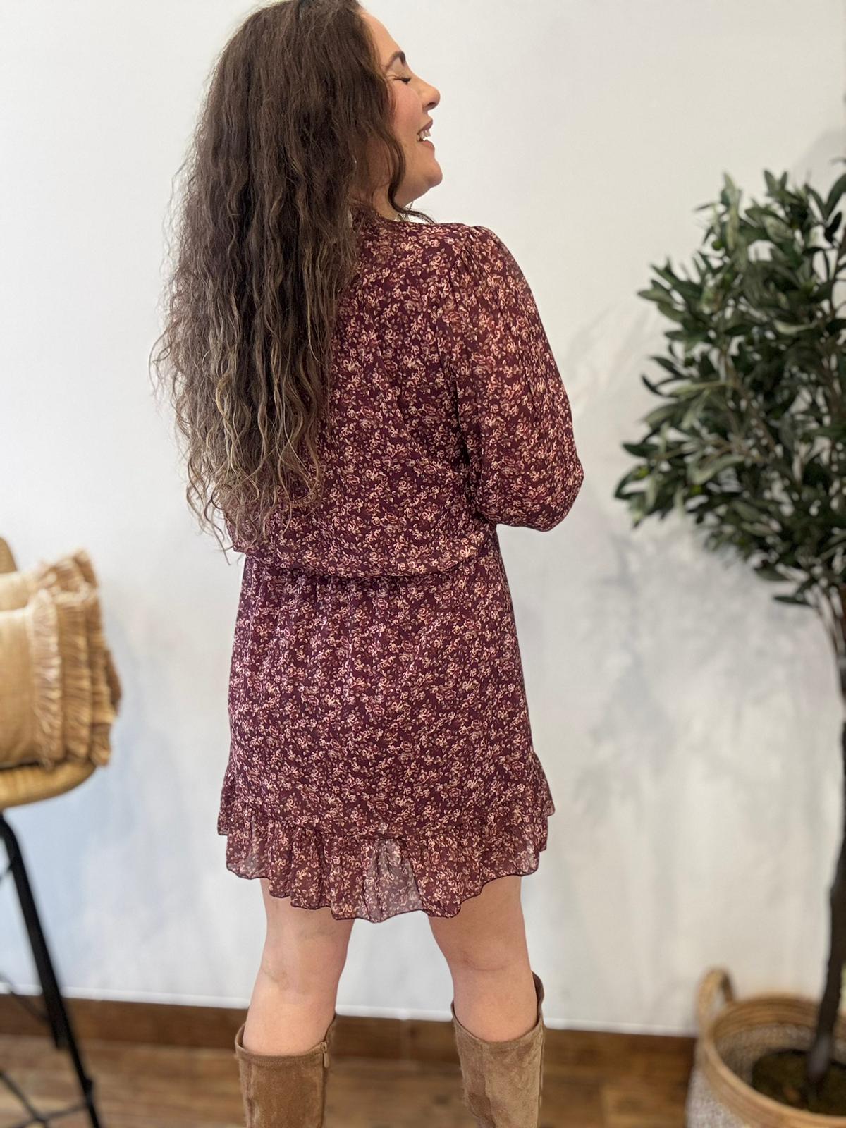 Vestido FLORES BURDEOS gasa