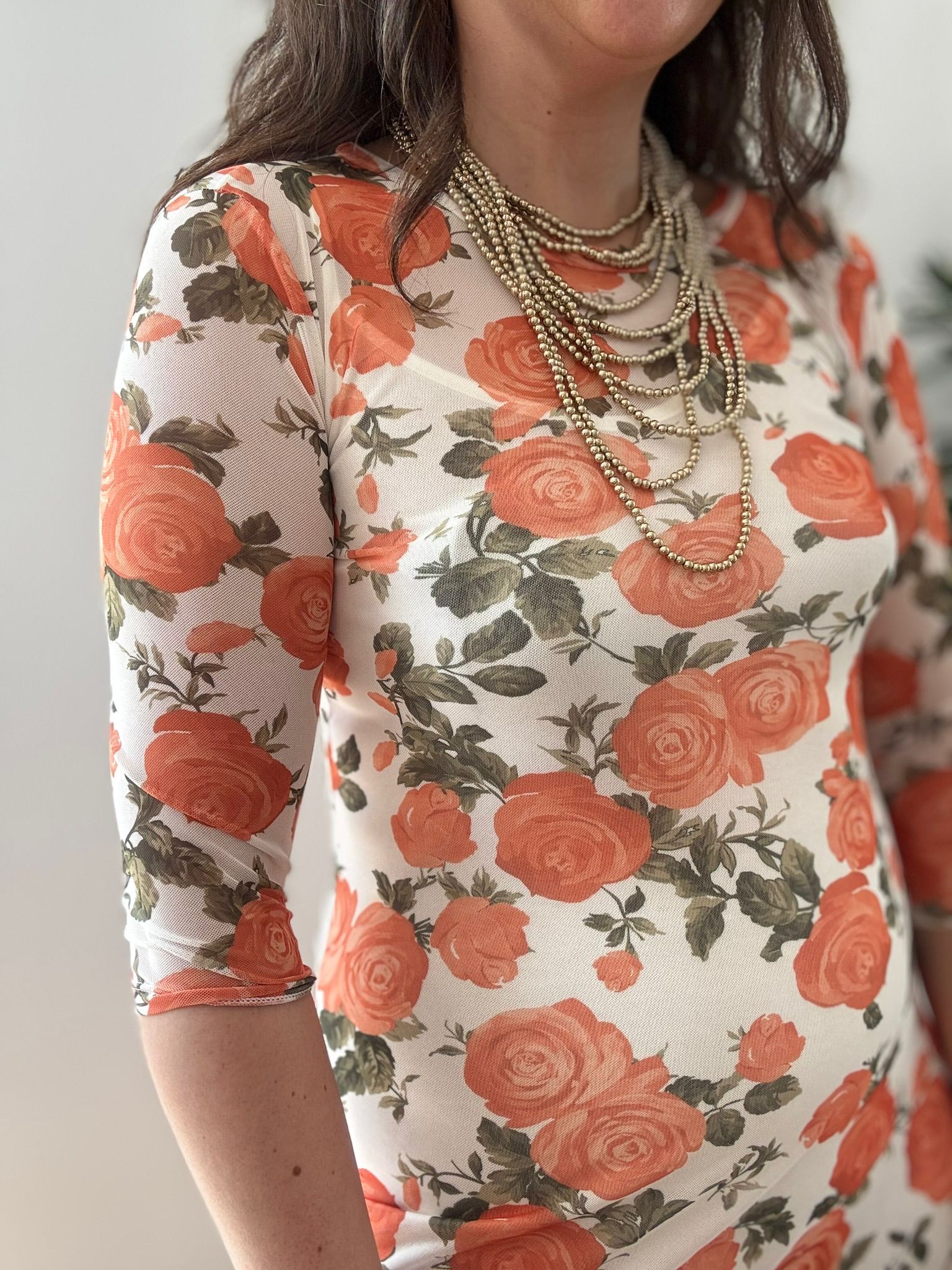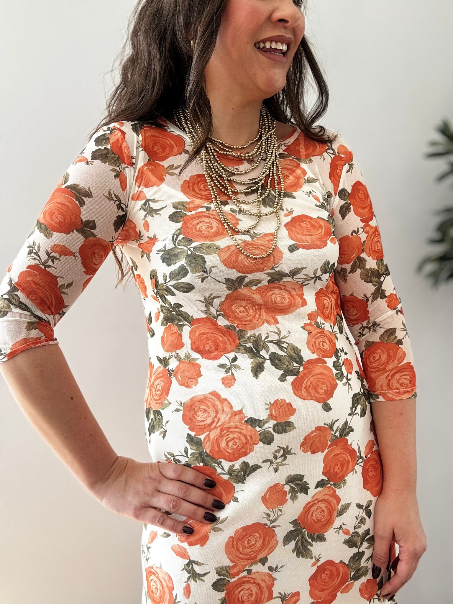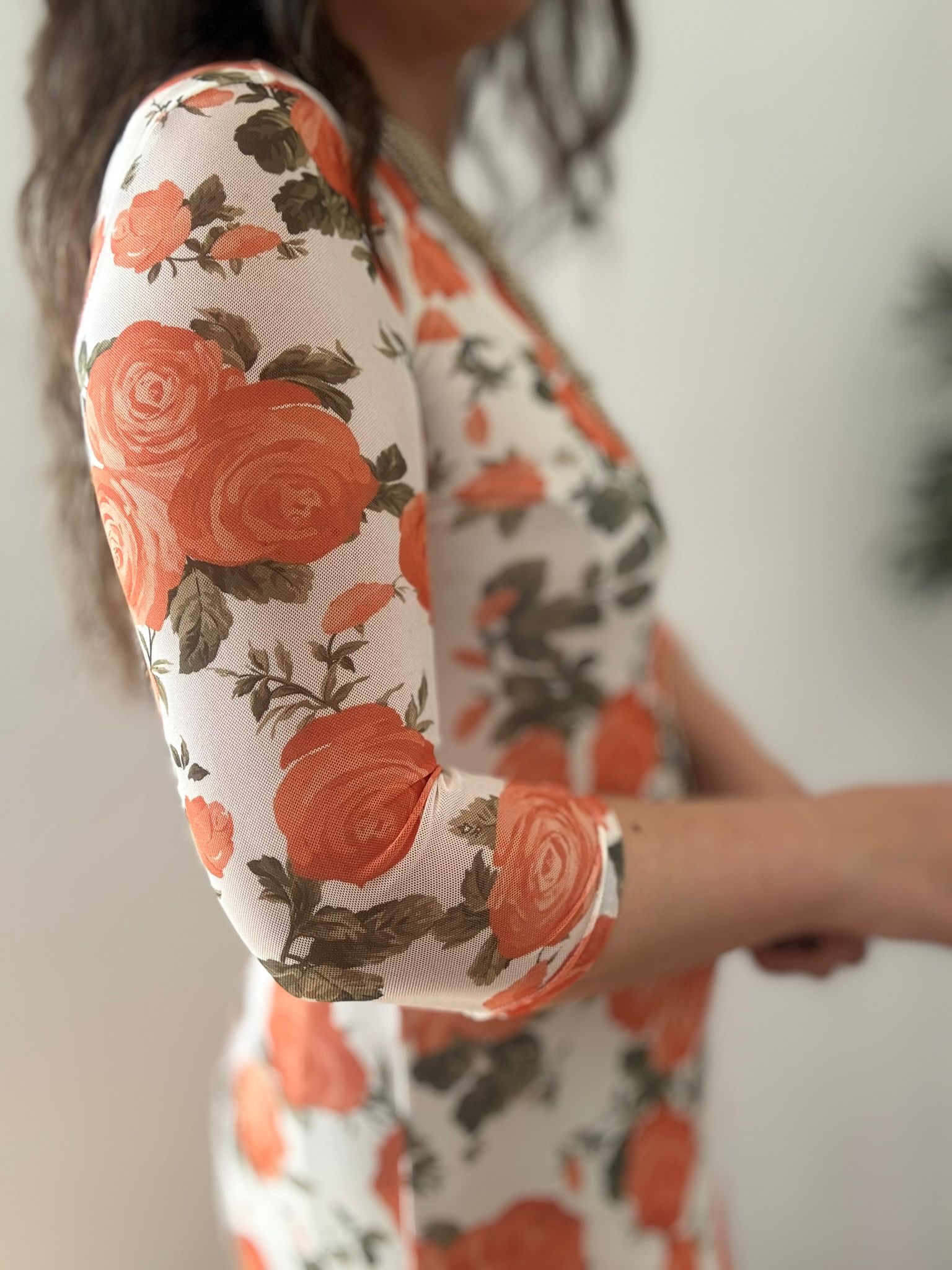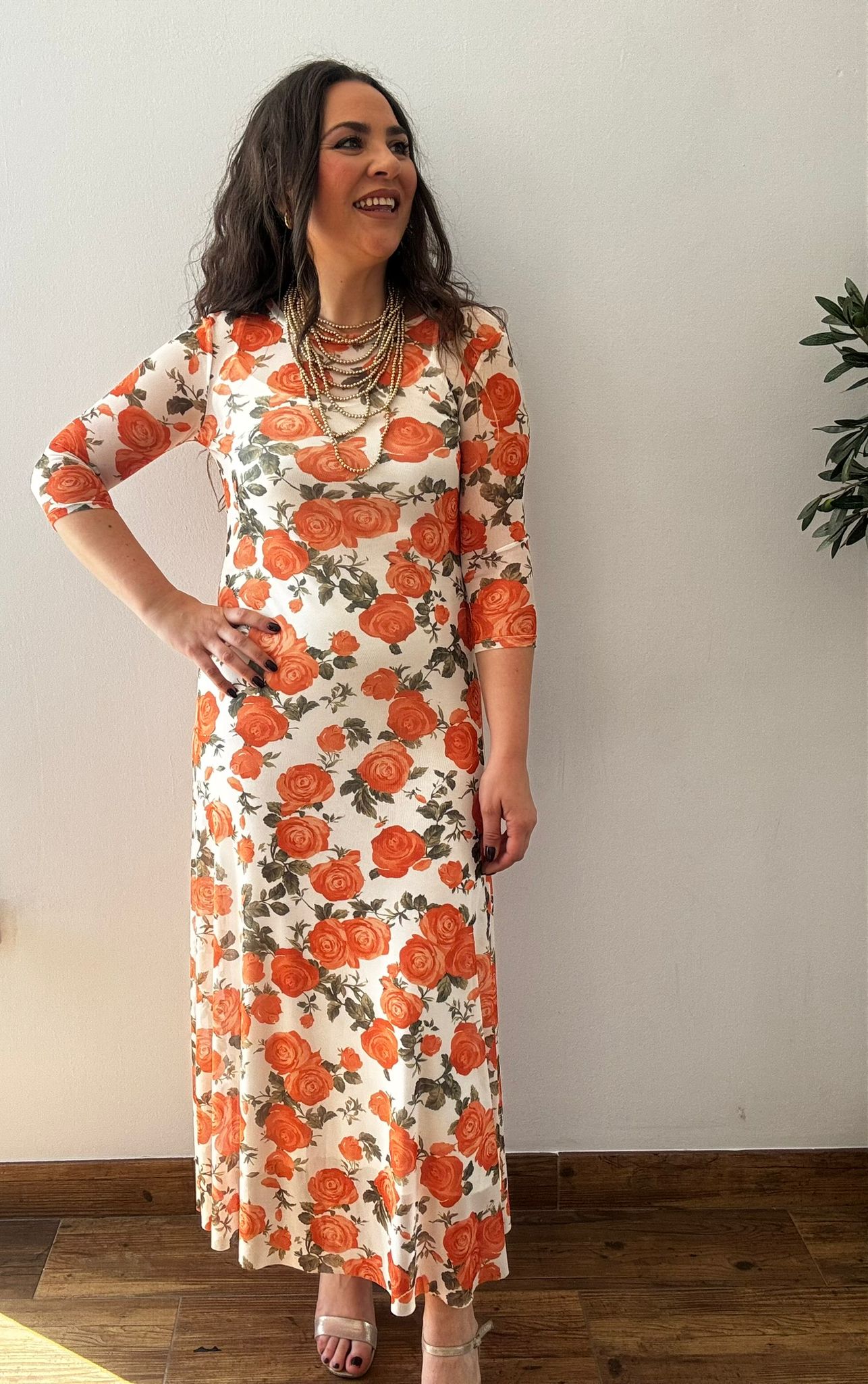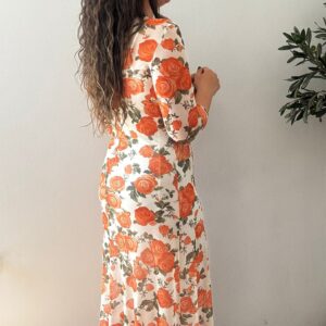 Vestido GASA flores naranja y blanco