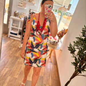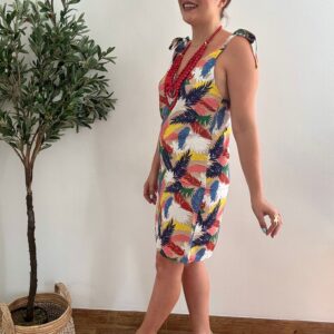 Vestido estampado de algodón con titantes ajustables. Ana lleva talla M y habitualmente utiliza talla L, mide 1.71m