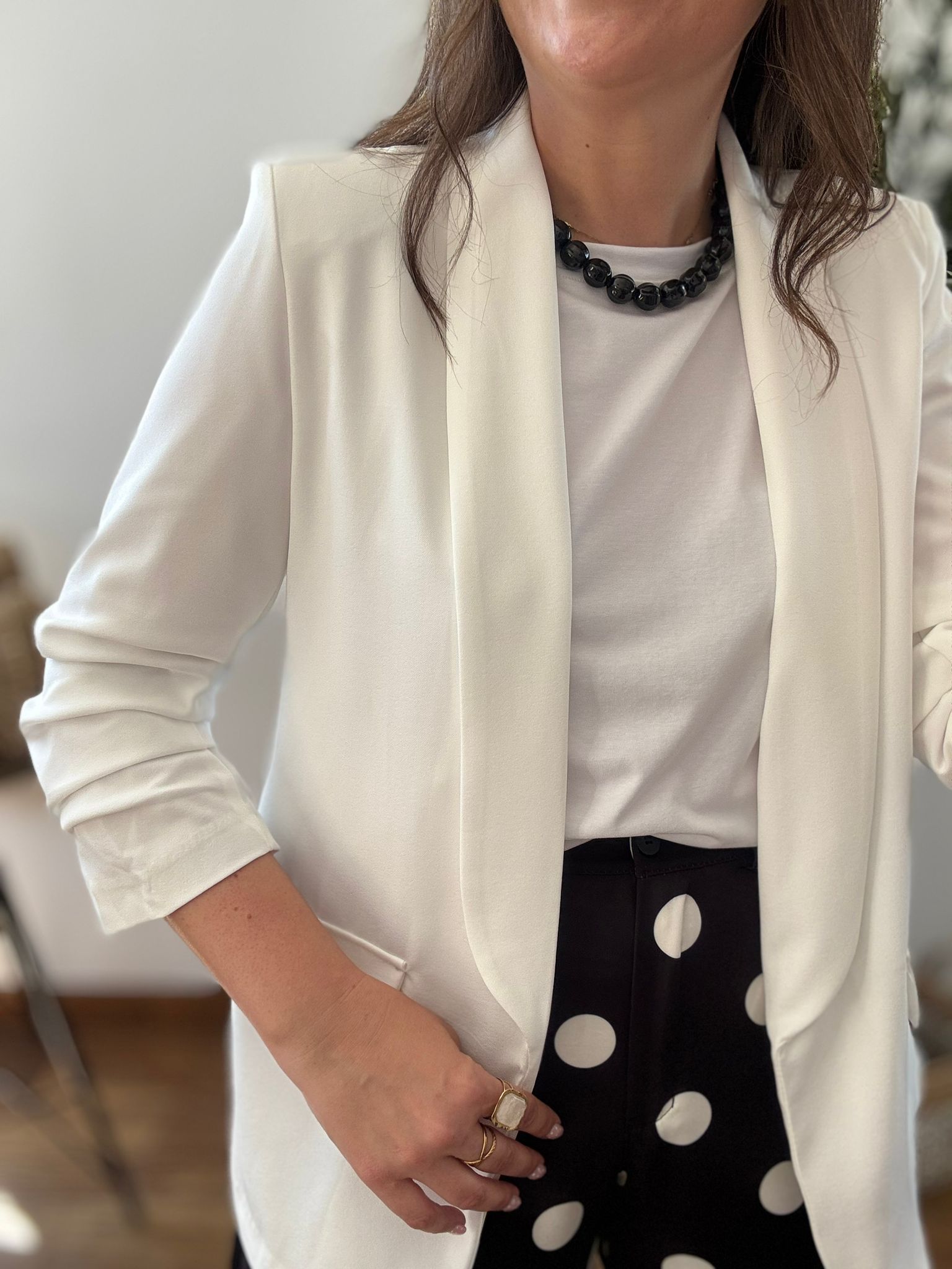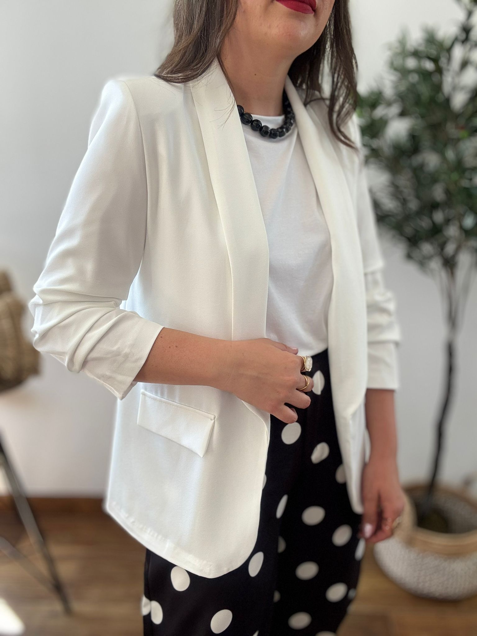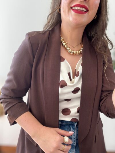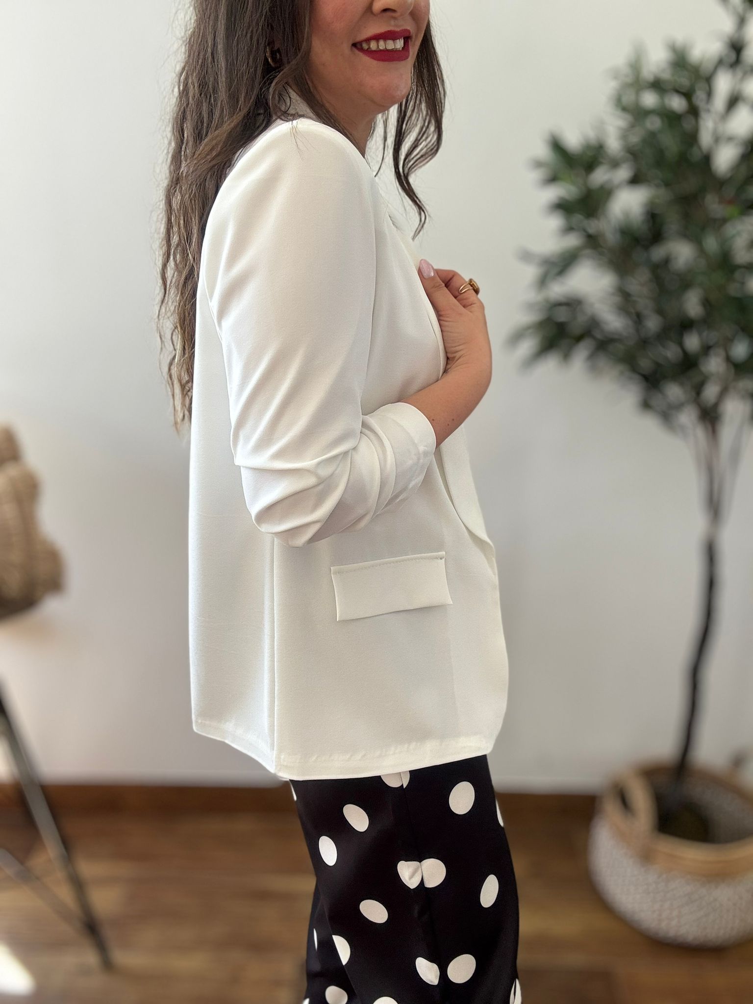 Si buscas una prenda que combine con absolutamente todo en tu armario, esta es la elegida. Nuestra blazer de corte fluido es la mezcla perfecta entre elegancia y comodidad. Su diseño abierto y ligero le quita rigidez a la clásica americana, convirtiéndola en una pieza moderna que puedes llevar tanto de día como de noche.