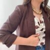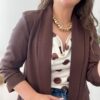 Para un look de oficina con carácter, llévala con una blusa con lazada y jeans claros. Si buscas algo más nocturno, lánzala sobre un vestido ajustado y añade tus tacones favoritos. ¡Es la prenda que siempre querrás tener a mano!