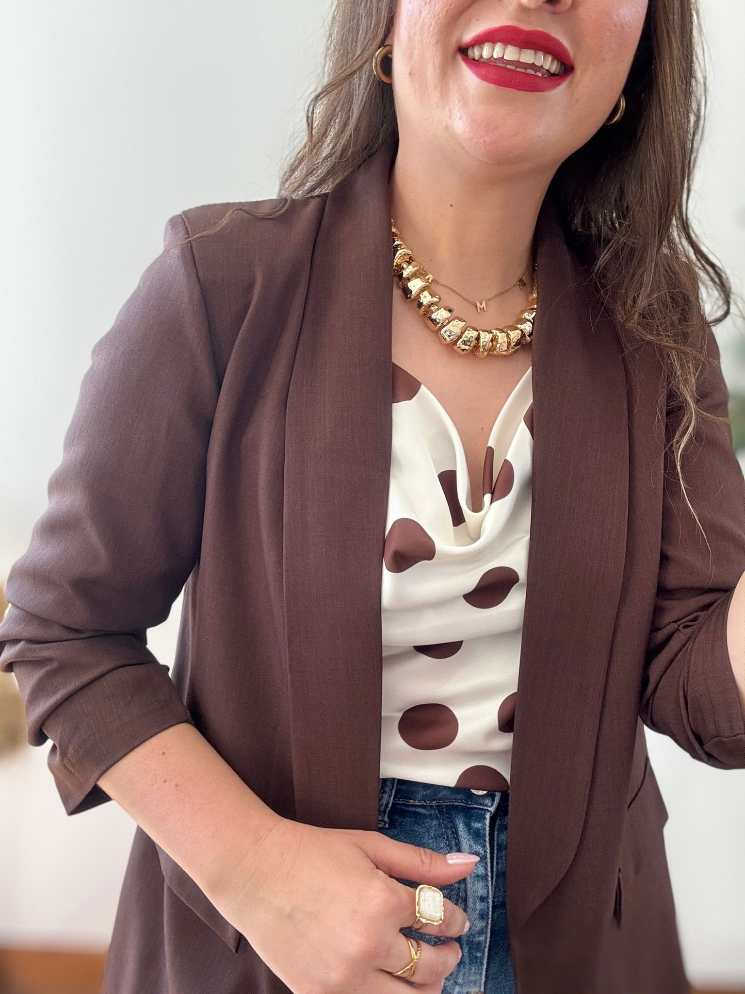 Si buscas una prenda que combine con absolutamente todo en tu armario, esta es la elegida. Nuestra blazer de corte fluido es la mezcla perfecta entre elegancia y comodidad. Su diseño abierto y ligero le quita rigidez a la clásica americana, convirtiéndola en una pieza moderna que puedes llevar tanto de día como de noche.