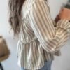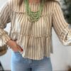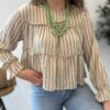 Blusa de rayas y volantes con puño en volante también. TU RECOMENDADA 36/42. Ana lleva habitualmente talla L/40. Medidas de la blusa: contorno de pecho 120 y largo 52cm