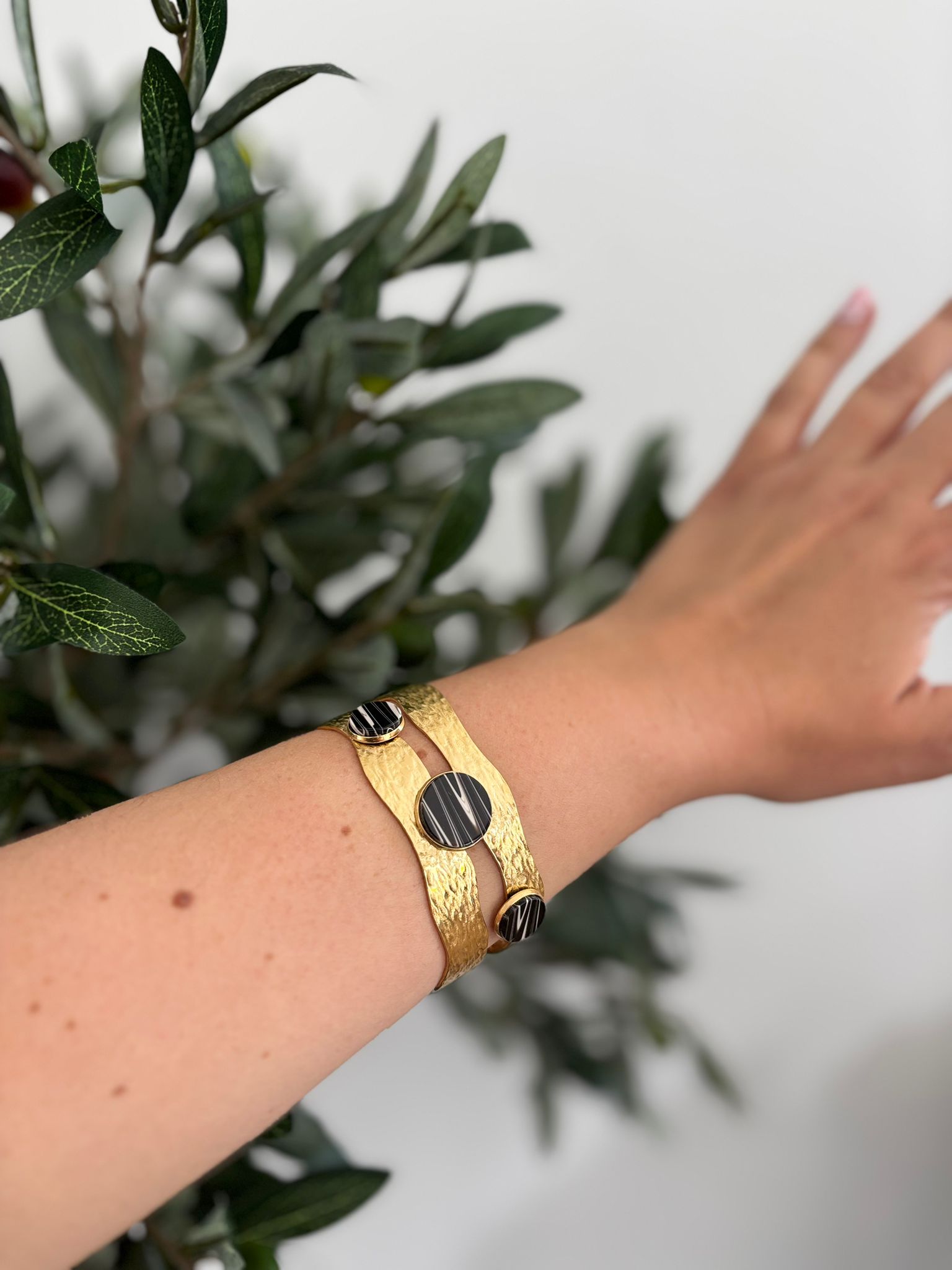 Brazalete DORADO piedras negras