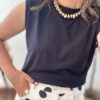 Es el equilibrio perfecto entre lo básico y lo extraordinario. Te va a encantar porque sus hombreras estructuradas definen la silueta y elevan una simple camiseta negra a una pieza de puro diseño. Su tejido de algodón suave y su corte sin mangas la hacen ultra cómoda y fresca, ideal para esos días en los que quieres verte impecable sin complicaciones. Es la prenda «comodín» que aporta fuerza y seguridad a cualquier look.