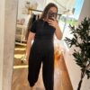 Conjunto de dos piezas top asimétrico y pantalón bombacho en licra.