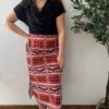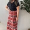 Falda con estampado étnico y aberturas laterales. Lleva goma en la cintura.