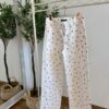 PANTALÓN DE TIRO ALTO DE ALGODÓN CON ESTAMPADO DE CORAZONES. No tiene elástico. Talla s/34 Talla M/36 talla L/38