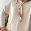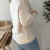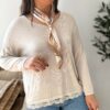 Jersey de hilo con cuello pico y terminación de encaje en la cadera. TU RECOMENDADA 38/44. Ana lleva habitualmente talla L/40. Medida del jersey: contorno de pecho 130 y largo 65cm