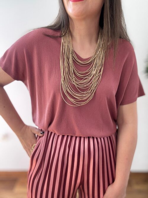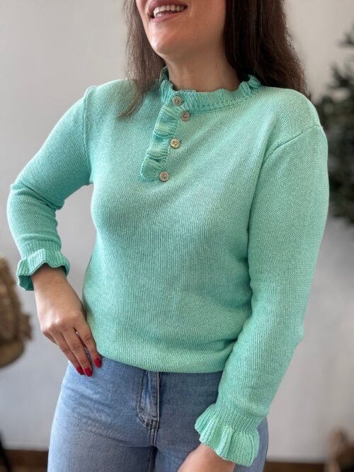 Te va a enamorar por su versatilidad. Es esa prenda «comodín» que eleva cualquier look básico gracias a su toque de color inesperado. Además, su tejido de punto es tan suave y fresco que no querrás quitártelo en todo el día. ¡Es el equilibrio perfecto entre lo clásico y lo moderno!