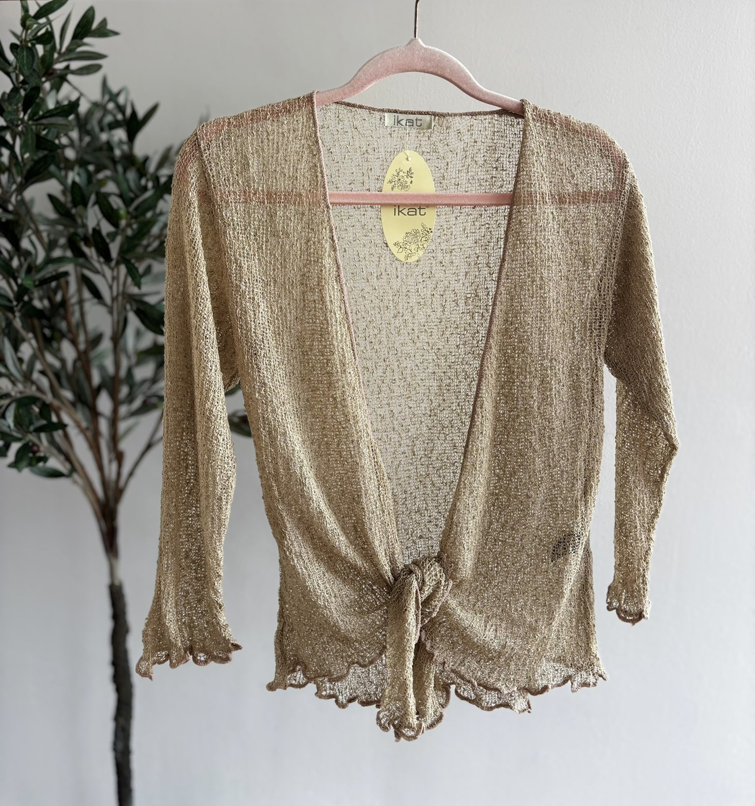 Por qué funciona: Al ser un tejido tan elástico, el nudo queda fijo y ayuda a definir la silueta, evitando que la prenda se vea demasiado suelta. Es ideal para llevar con vestidos largos o faldas de tiro alto.