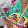 Vestido algodón/lino con efecto falda pareo con lazada. Manga murciélago.TU RECOMENDADA 36/42. Ana lleva habitualmente talla L 40-42 y mide 1.71m