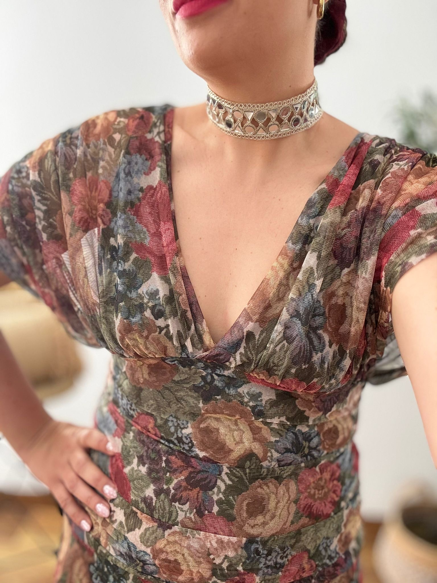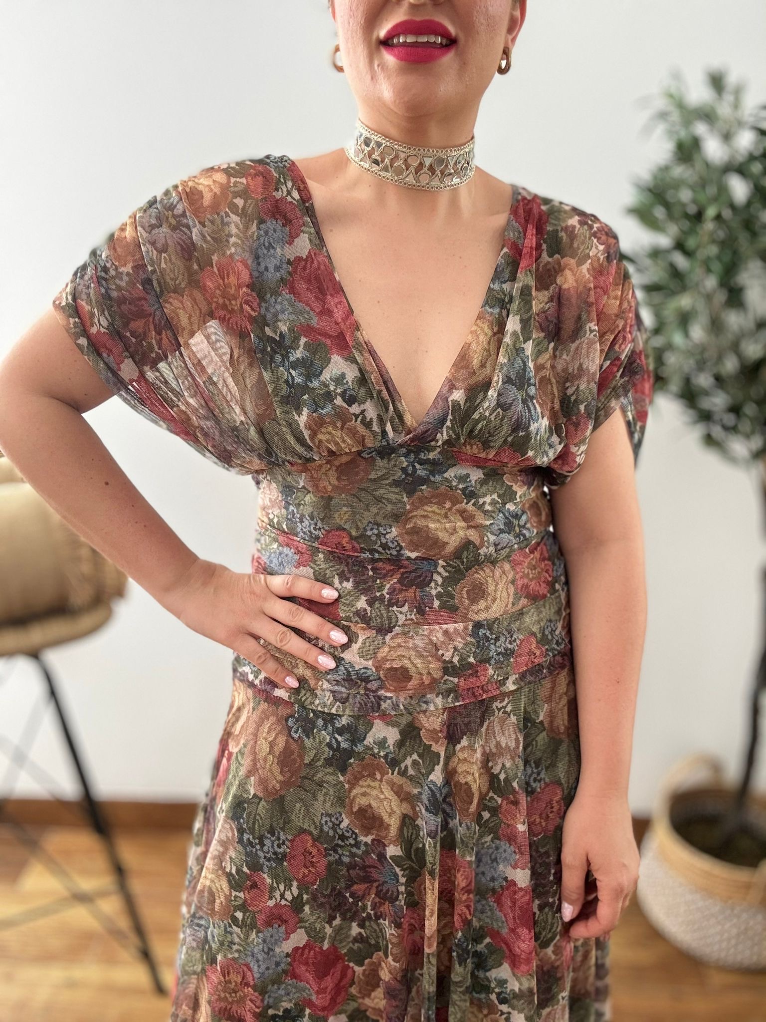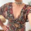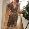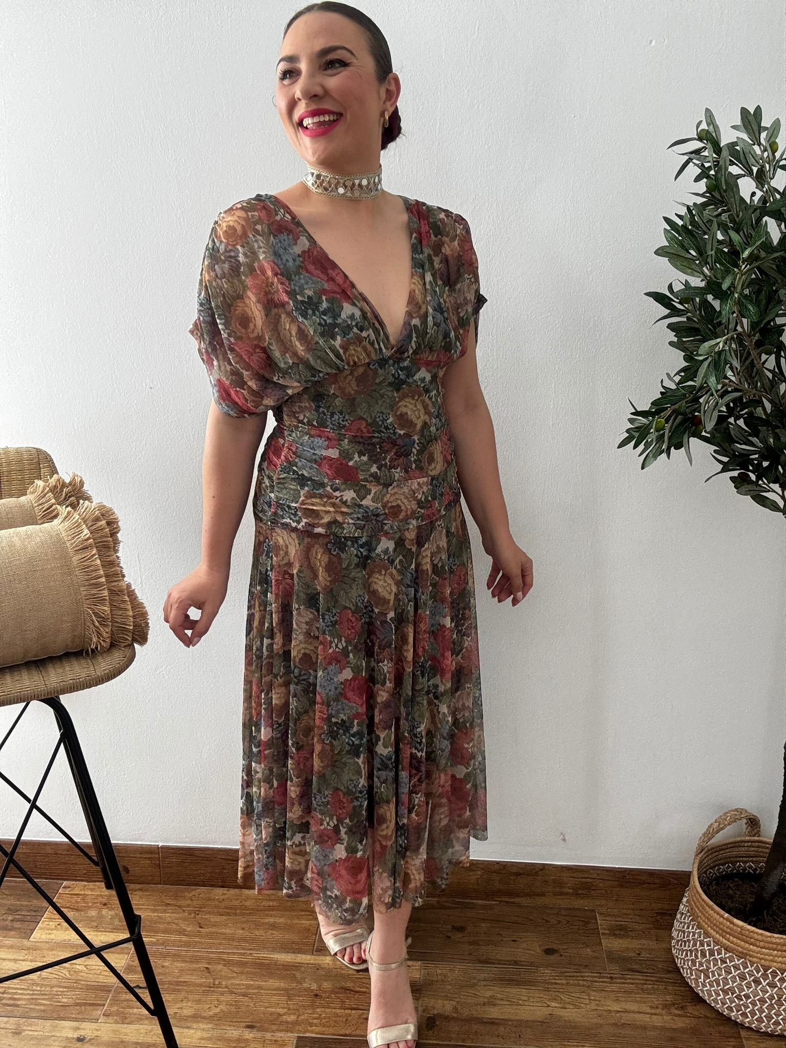 Un vestido con estilo que no pasa desapercibido. Su estampado, su escote y sus mangas son perfectas. Ideal para eventos.