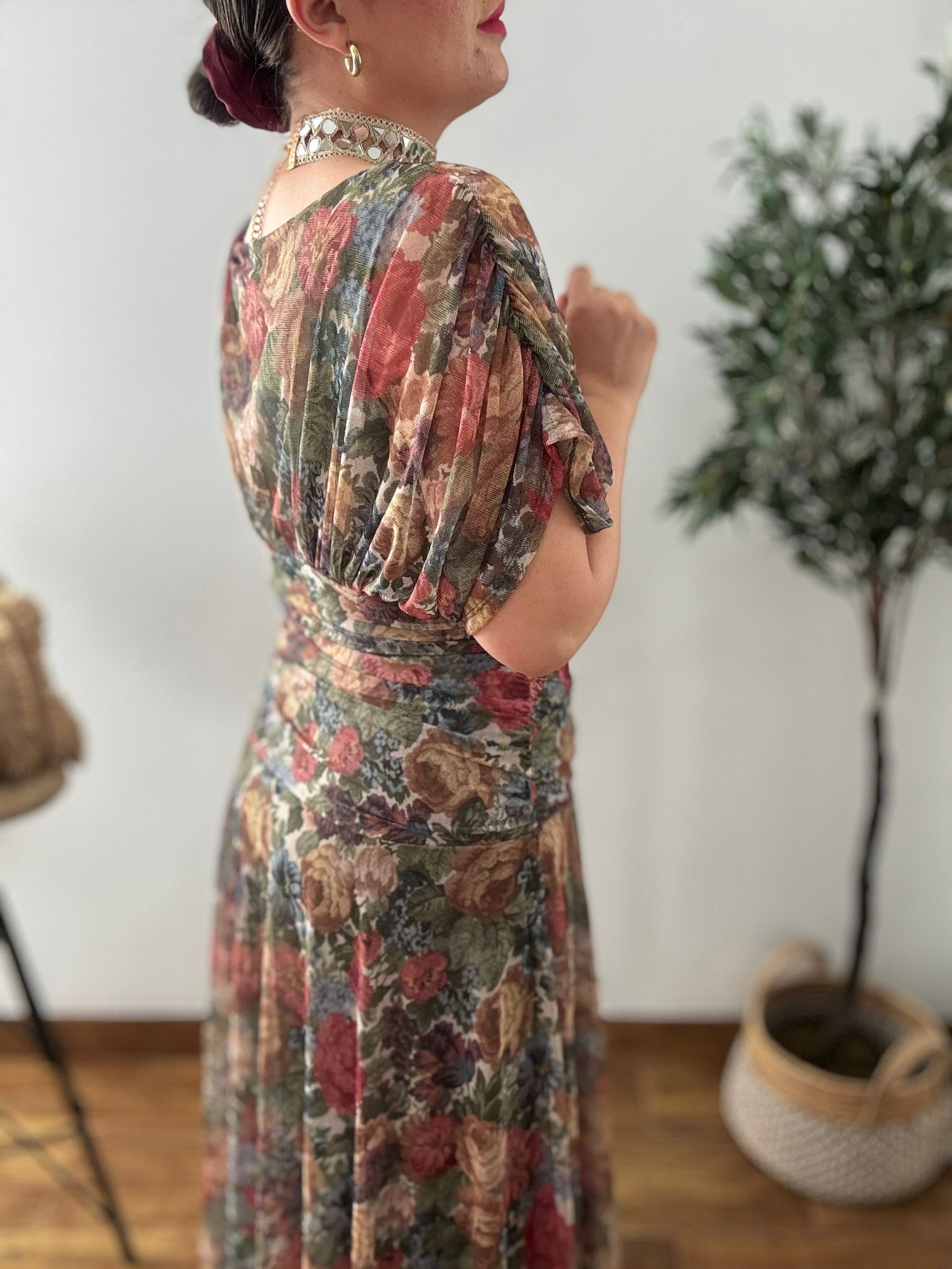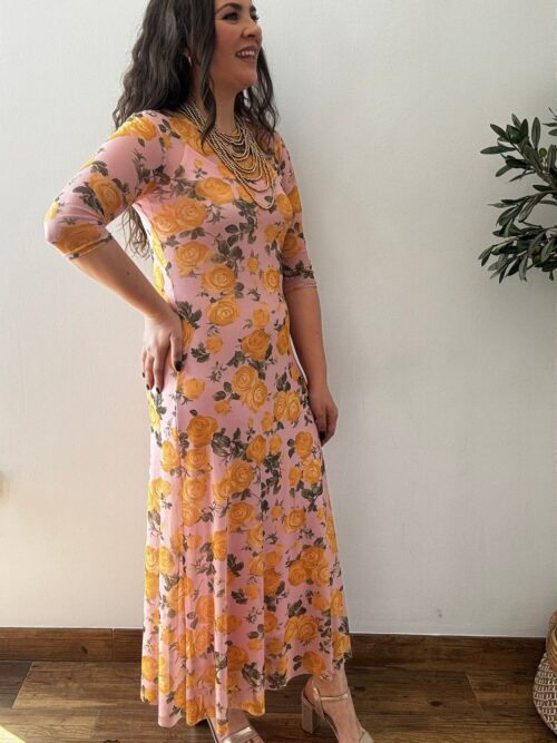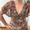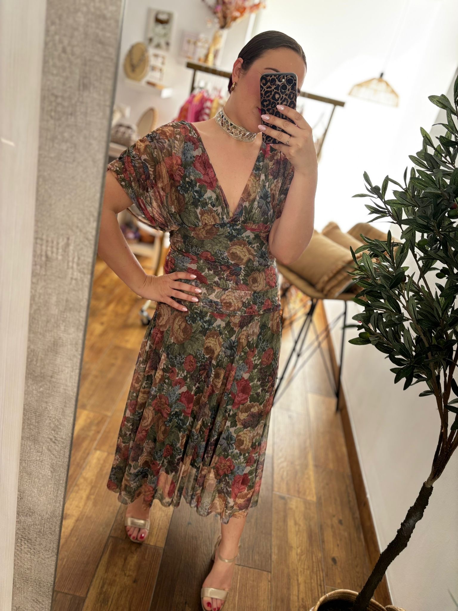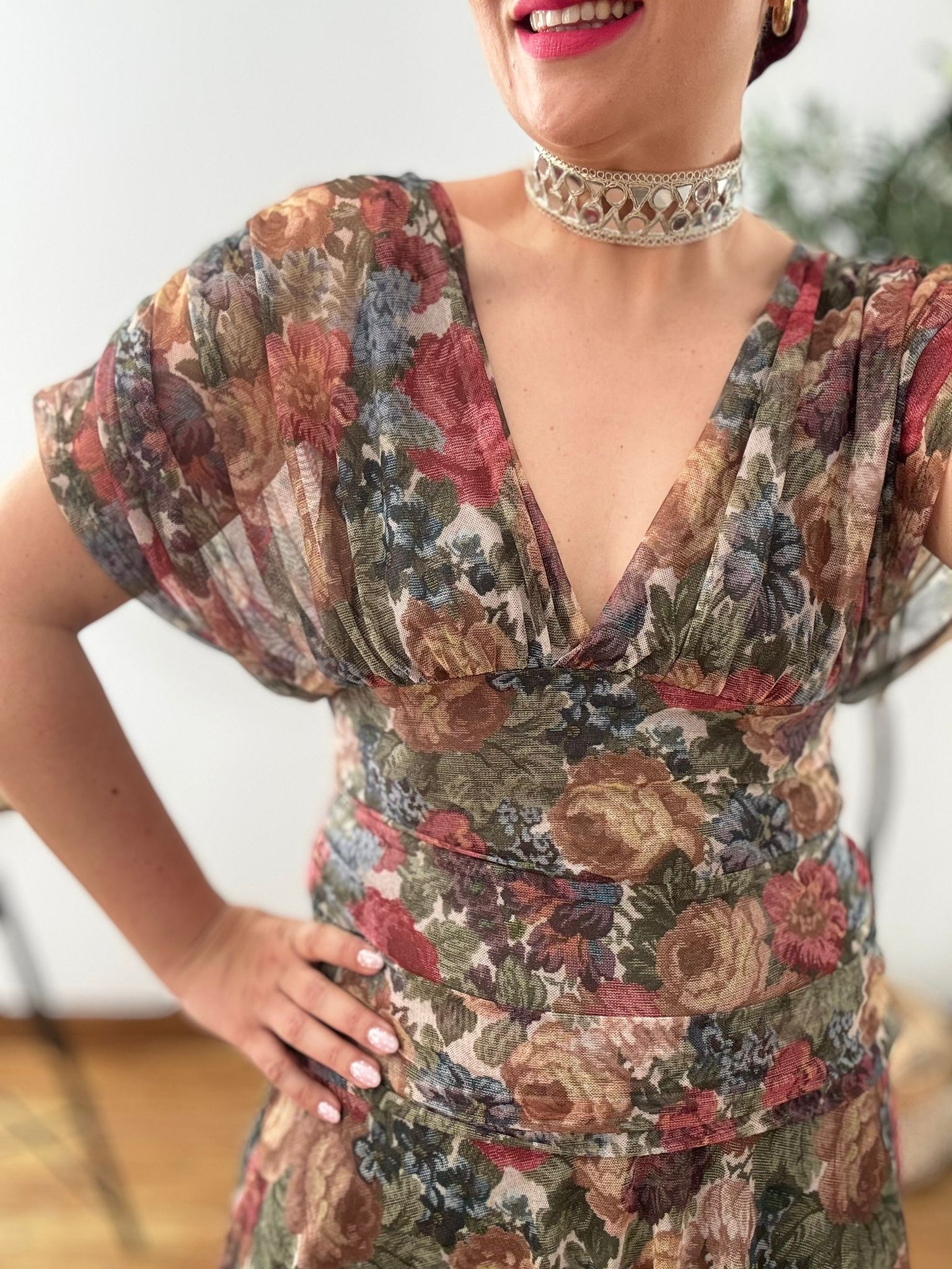 Un vestido con estilo que no pasa desapercibido. Su estampado, su escote y sus mangas son perfectas. Ideal para eventos.