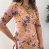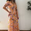 Vestido de gasa semi transparente con estampado. Lleva forro interior hasta abajo.